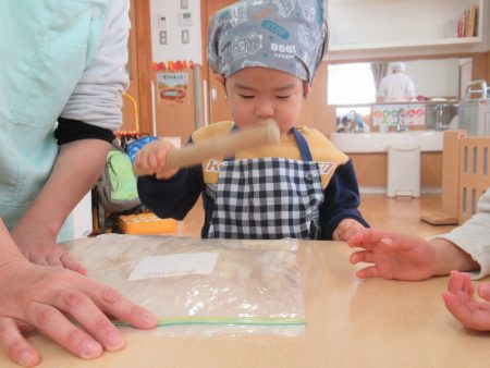 味付けの時はお部屋中いい香り!「いいにおいだねえ!」と幸せそうな子どもたちでした。