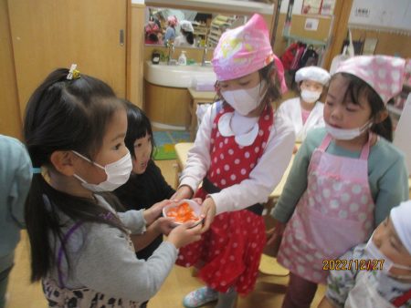 ゆめ組は「紅白なます」と「煮しめ」を作りました。