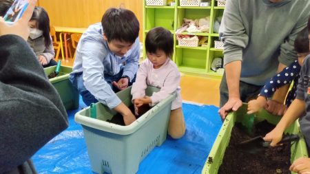 今回の活動では、保護者の方と子どもたちに楽しみながら種植えの体験をしてもらうことができました。