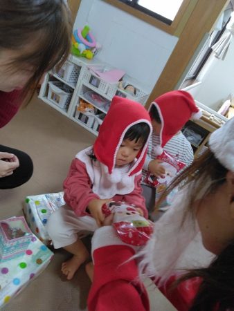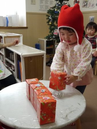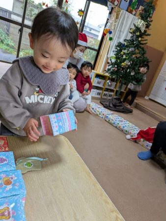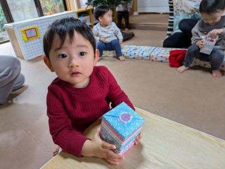 とインターホンが鳴り、保育室にプレゼントが届きました。