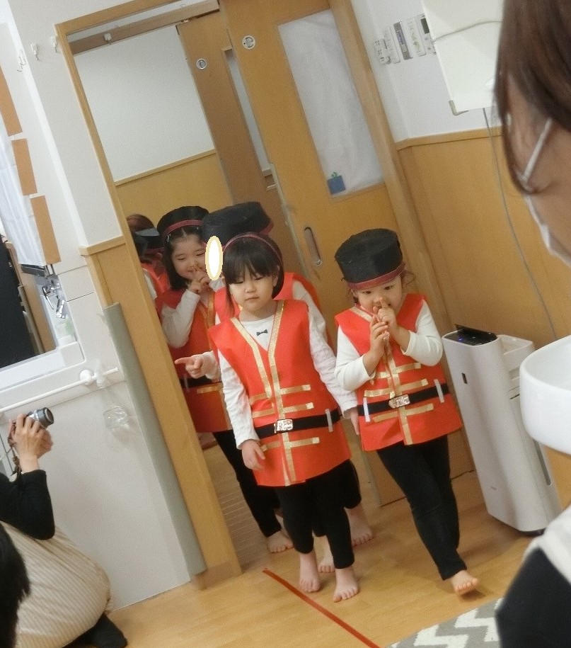 一緒に歌ったり歌詞に合わせて手を動かしたりぺこっとお辞儀をしたり♪
