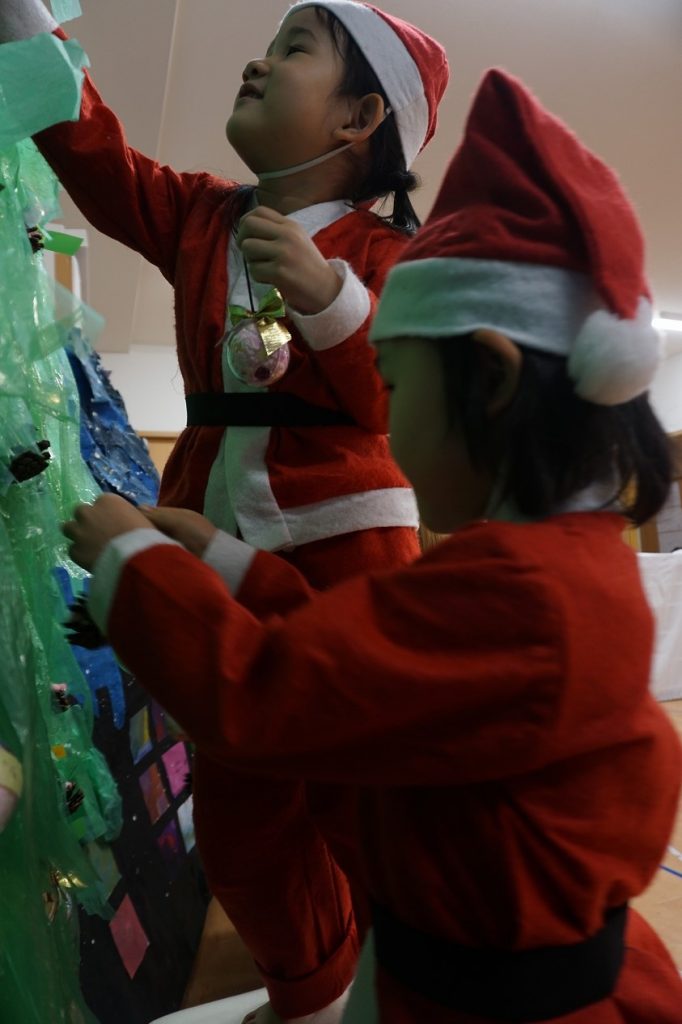 どうしたら喜んでくれるかな?とそれぞれの意見を出し合いながら、手作りしたオーナメントをもみの木に飾っていきました。