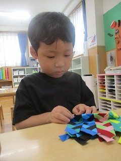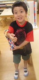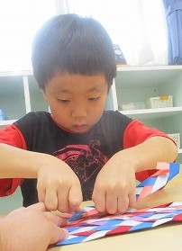モンテッソーリ教具である「三つ編み」を提示してみました。