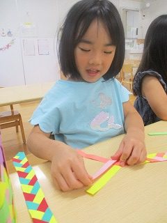 好きな色を選んで編み込んでいくので自分だけのオリジナル作品ができるのでとても喜んでいました。