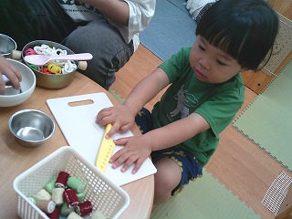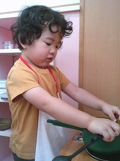 おままごとでは、「うどんにする?ハンバーガーもたべる?」