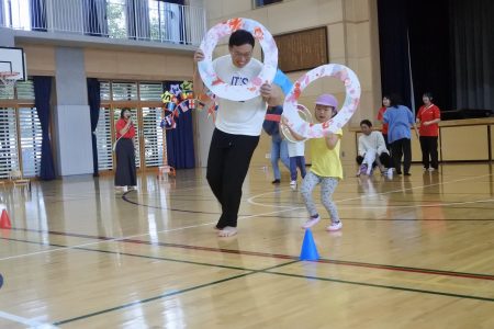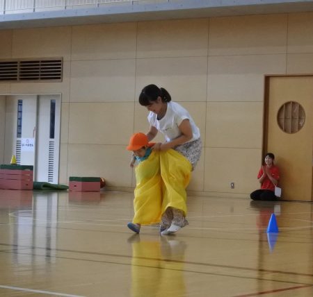 親子リレーでは、手を繋いで楽しんでいただきました。