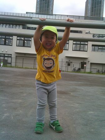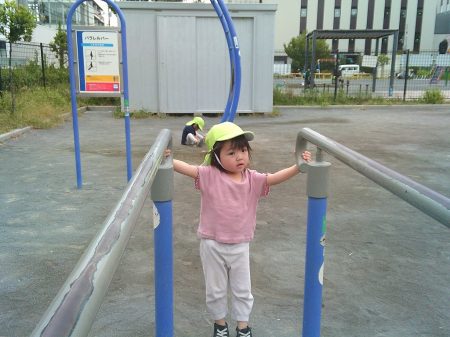 公園に到着すると思い切り走ったり、棒にぶら下がるなどの運動遊び!