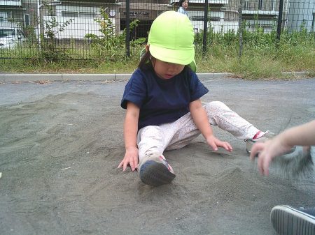 イメージを膨らませて、砂でケーキや山を作ったりしています♪