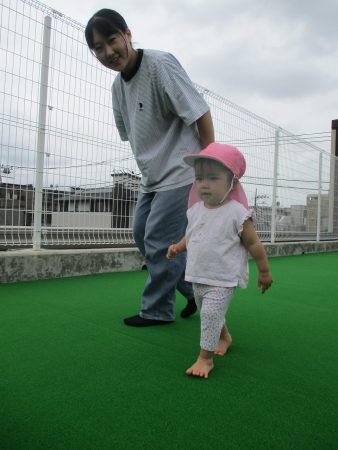 人工芝の感触を足裏で感じながら、歩くことを楽しんでいます。