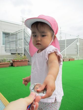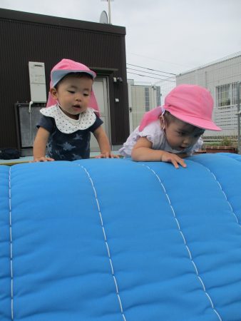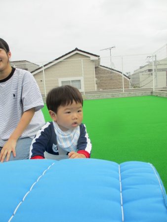 ◎アイン武蔵小杉北保育園◎ 屋上で運動会ごっこ たんぽぽ組(0歳児)