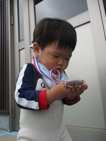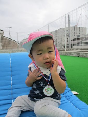 屋上でたくさん体を動かしたあとは、メダル授与です。