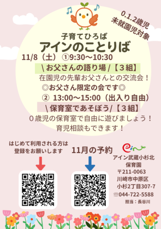 ◎アイン武蔵小杉北保育園「アインのことりば」11月のお知らせ◎
