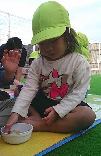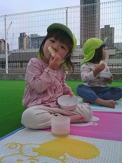 ◎アイン武蔵小杉北保育園◎ 屋上でおやつを食べたよ!(2歳児すみれ組)