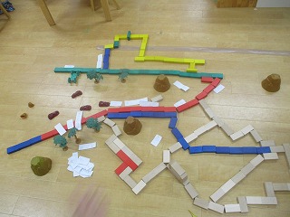 子どものたちのやり取りの中で遊びが発展し街が出来てきています♬