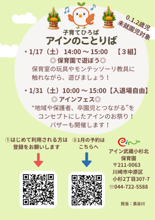 ◎アイン武蔵小杉北保育園◎「アインのことりば」1月のお知らせ