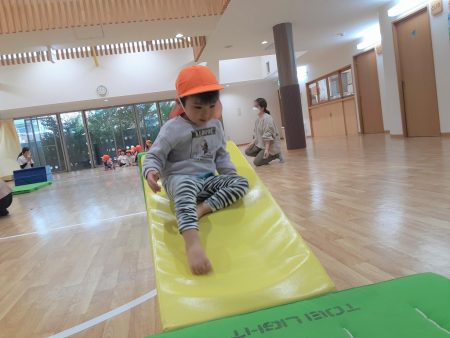 滑り降りる子等、好きな体勢で降りていきます(*^^*)