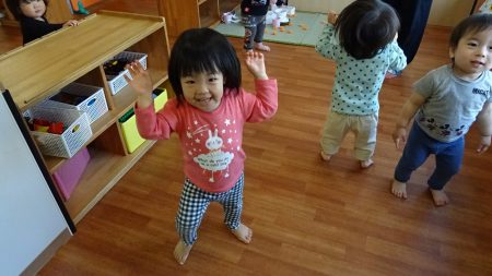 行ったときは。保育士がリズムの歌を歌いながら、みんなで楽しんでいたり、それを眺めていたり・・・