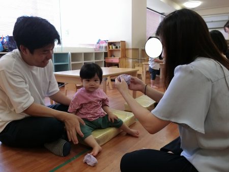 すいけい棒や0遊びなどを通して、「0」の概念をお伝えしました。保護者の方々からは「へー!」「こうやって分かっていくんだ」などの声が聞かれていましたよ。
