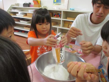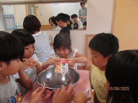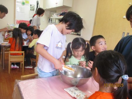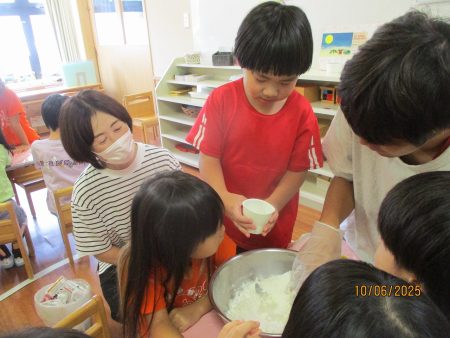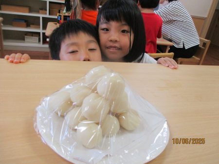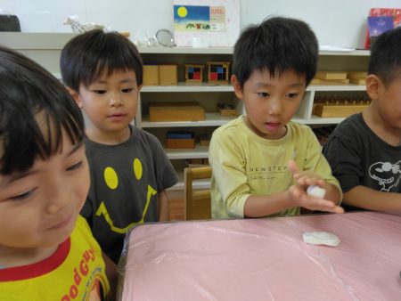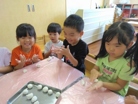 生地が出来上がると「お月様みたいに真ん丸だね」「パンみたいで美味しそう」などの声が聞こえていました。