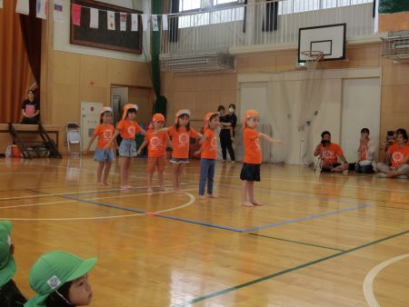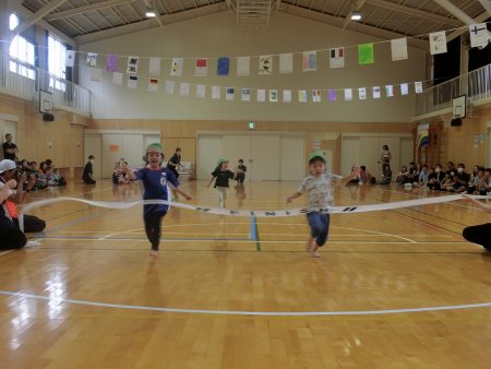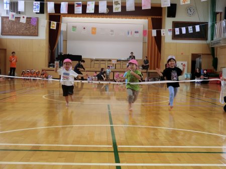たいよう組は世界陸上を見てカーブをやってみたいとなり今年のかけっこはトラック半周しました。ゴールではみんなのいい笑顔が見られました。