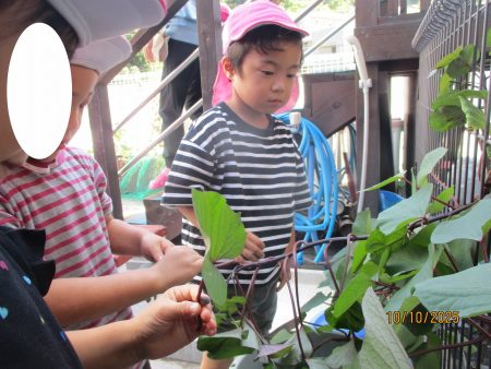 そら組の子どもたちが夏頃から栽培し始めたさつまいもを収穫し、クッキングを行いました!