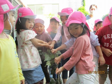 「おおきなかぶ」の絵本のように「うんとこしょ!どっこいしょ!」と掛け声をしながら抜いていました。