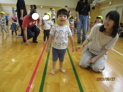 まずは、にじ組(2歳児)のかけっこの様子から見ていきましょう!