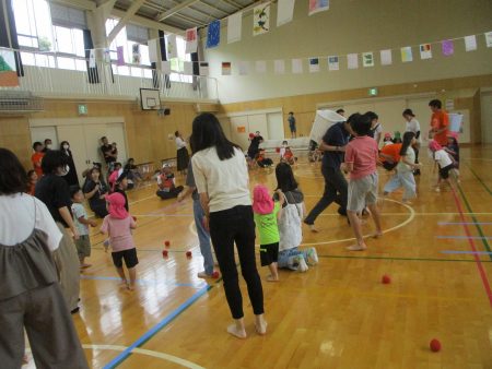 保護者の方が玉を集めて、お子さんに渡してあげたり