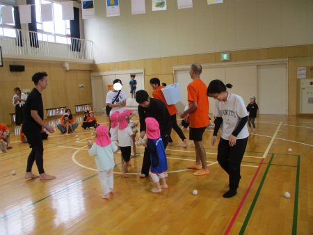 保護者の皆さんと一緒に玉入れ!