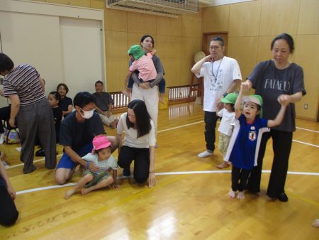 お子さんを抱っこして追いかけたり、親子で協力していました!