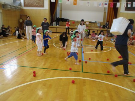 保護者の皆さんと一緒に玉入れ!
