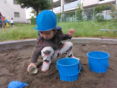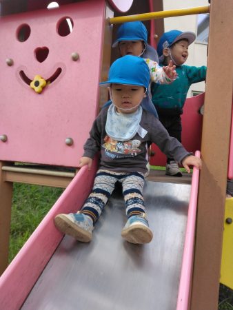 おやつを食べた後は、砂に触れたり遊具で思い切り身体を動かして遊びました。