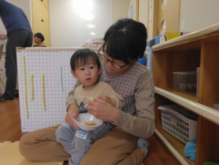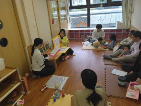 続いて、『おふね』のわらべうた遊びを親子で楽しみました。