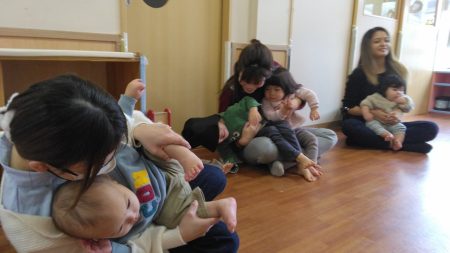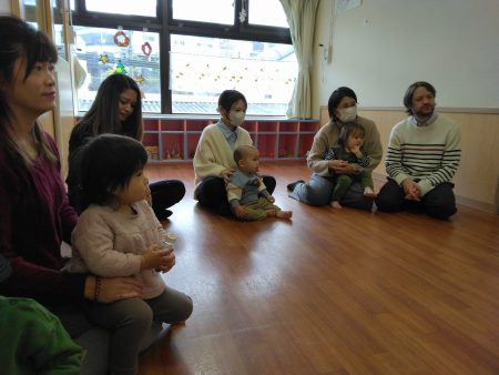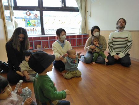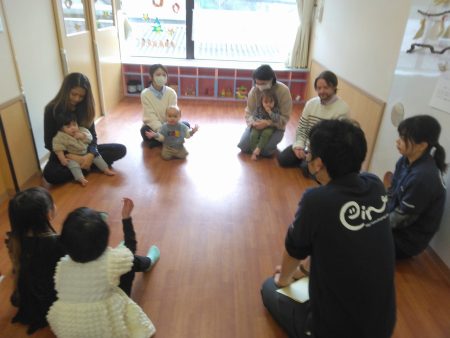 「おすわりやす いすどっせ」や「うえから したから おおかぜこいー」を行いました。