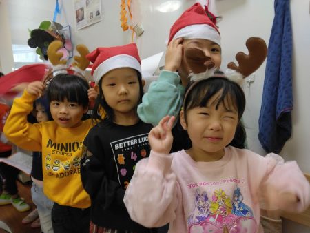 少し緊張している様子もありますが、サンタさんの帽子とトナカイのカチューシャを付けて