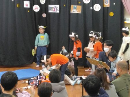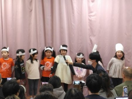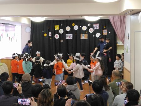 最後は、みんなで「ぼくたち こやぎこやぎこやぎ ぼくたちオオカミ みんなでなかよく」