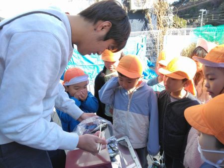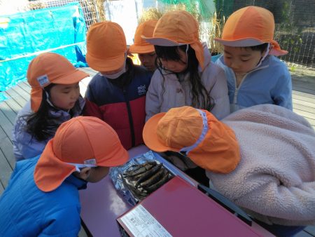 集会終了後には、たいよう組が柊鰯を作るために、鰯を焼きます。