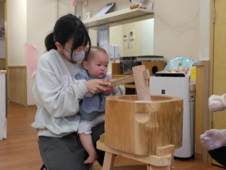みんなでひし餅作りに使う餅をつきました。