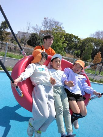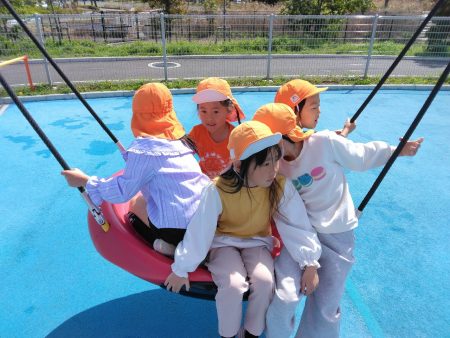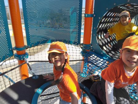 大きい滑り台やブランコなど普段なかなかできない遊具に大興奮!何度も滑り台を滑ったりしていました。