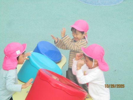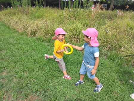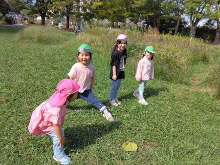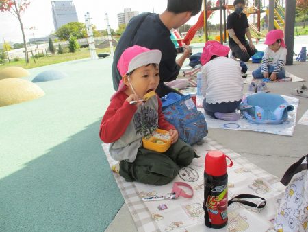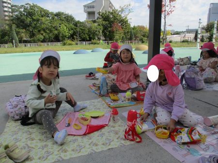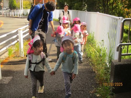 今年度は、遠足が3回あり、友だちと手を繋いで遠い公園にも歩いて行くことができました。