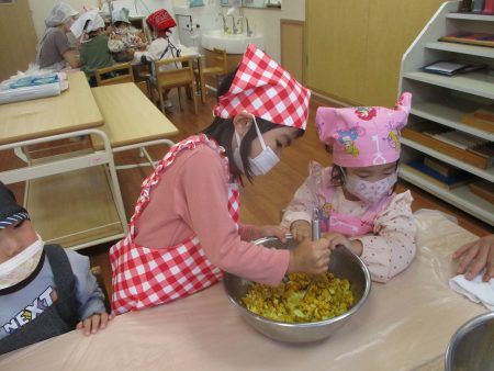 栽培したさつま芋を使って、サラダを作ったり、ピザ、お節もみんなと協力したりしたね!