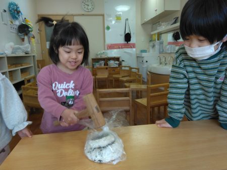 1月には、鏡開きをしたりお正月遊びをしたり。