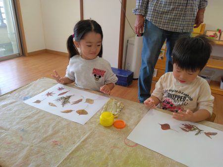 アイン楽園町保育園 ☆3歳児クラス☆ 葉っぱでお絵描きしたよ!