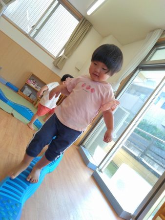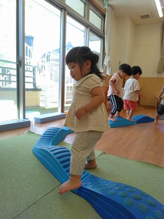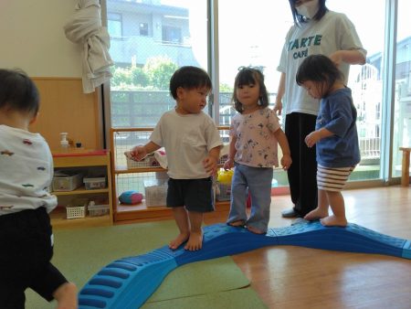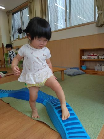 ウェーブバランスをゆっくり慎重に渡りながら、体幹を育んでいます!