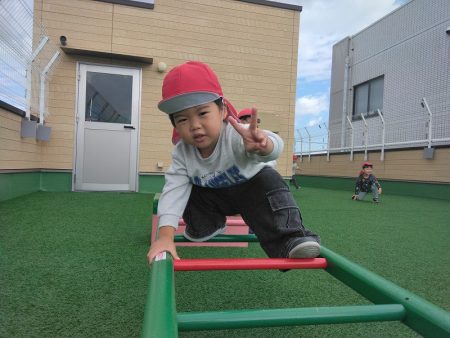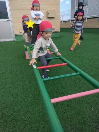 初めは、怖くてはしごを跨いでいた子も、繰り返し行ううちに手足をバランスよく使って渡ることができていましたよ!