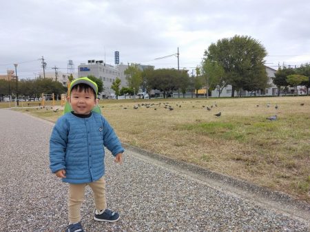 ”待て待て~”と鳩との追いかけっこを楽しんでいましたよ(^^)