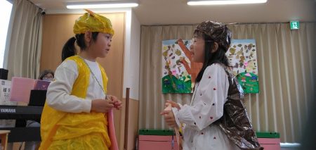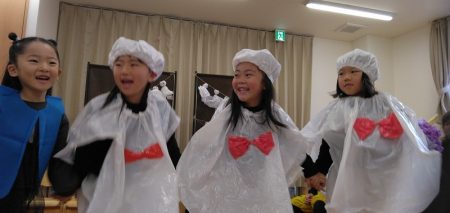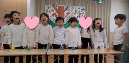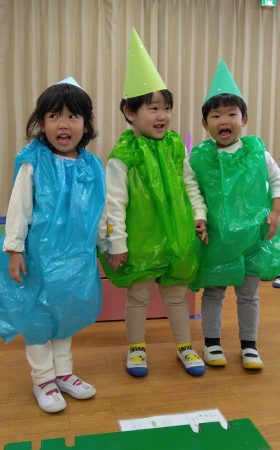 4歳児クラスは合奏・歌とオペレッタ「てるてるぼうずいちまんこ」を披露しました。