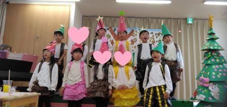 3歳児クラスは「カラフルクレヨンのクリスマスツリー」の発表でした。