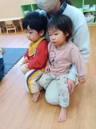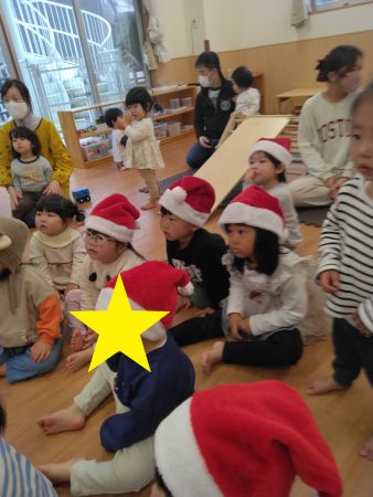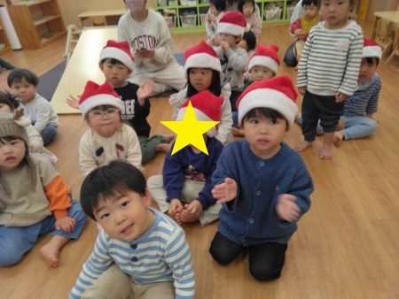「ジングルベル」「赤鼻のトナカイ」「あわてんぼうのサンタクロース」の3曲が流れると知っているフレーズを口ずさんだりピアノに合わせて手拍子をしたりして楽しんでいましたよ。