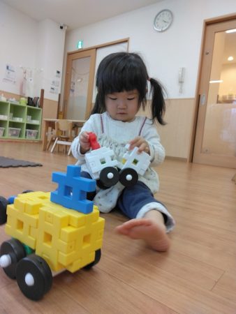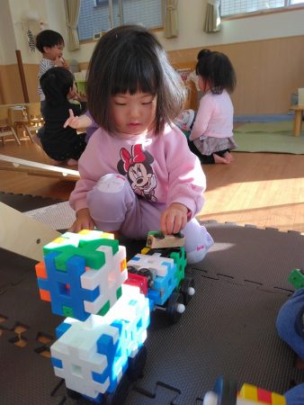 井形ブロックを使い、身の回りの物や大好きな車を作って楽しんでいます♪